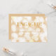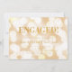 Classy engagement party invitation featuring the words "Engaged!" in faux gold foil against a champagne bokeh lights pattern background. Invitation has a champagne colour background back side.
