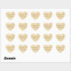 Chic heart shaped stickers with a bubbly golden champagne bokeh background display three lines of custom text (shown with "thank you" and your business or boutique name) and a black field for hand writing prices.