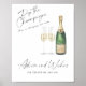 Watercolor elegant champagne bottle with two glass of champagne and text "Pop the champagne. She is changing her name.".