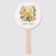 Champagne-coloured floral wedding hand fan with elegant typography customisable to your event specifics.