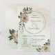 Unique wedding invitation featuring romantic champagne flowers and green leaves.