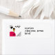 Return address labels for your party invitations, with champagne flute and balloons motif, in hot pink, black and gold, and easily personalised name and address details.