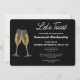 This design features two champagne flutes and all template text details on the front over a black background. Personalise the text in the template fields, remove text or edit using the design tool to select a font style, size, and colour you prefer.
