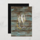 champagne flutes rustic blue barn wedding invitation