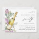 Pretty 60th birthday invitations featuring a watercolor illustration of a champagne bottle surrounded by purple flowers. Large "sixty" text is written in script, for a fun-but-elegant style. The reverse side is a coordinating pale green colour. (Background colours can be changed, if wanted, by using the design tool).