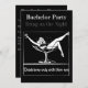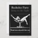 Add the event details for a night out with the boys for a bachelor party featuring a girl in a giant champagne glass - but no touching: "Drink to me only with thine eyes". Add a tagline for the event, with date and time on the back of the invitation.