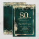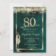 Champagne Glass Gold Confetti Green 80th Birthday Invitation
