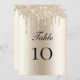 Champagne Glitter Drips Wedding Table Flat Card