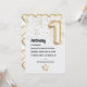 Trendy champagne gold foil number balloon first birthday party invitation with a masculine flair.
