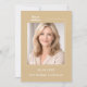 A soft champagne gold colored background, white text. Personalize and add your photo and the details.
