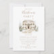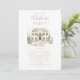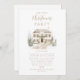 An elegant Christmas invitation featuring a grand festive manor surrounded by snowy evergreens, designed in warm champagne and taupe tones. The soft watercolor style and neutral palette create a timeless, sophisticated holiday aesthetic — perfect for formal gatherings or cosy family celebrations.