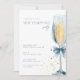 This editable New Year's Eve party invitation template sets the tone for your magical holiday celebration with libations. The JOIE Collection features crisp whites and a bubbling glass of champagne, combined with a combination of a modern serif font with decorative and script fonts in a deep navy blue.