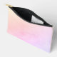 This cosmetics accessory bag features a champagne peach to pink purple ombre watercolor wash background with a customisable name in a pretty simple clean font.