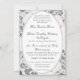 This design encompasses the essence of elegance. A champagne-pink background image of delicate lace surrounds your text which is displayed in a silver-coloured Nuptial font and encircled by a silver-coloured oval. Text follows the traditional Catholic format for a wedding invitation. Entire design is framed by a silver border. Ideal for a traditional wedding.