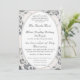 This design encompasses the essence of elegance. A champagne-pink background image of delicate lace surrounds your text which is displayed in a silver-coloured Nuptial font and encircled by a silver-coloured oval. Text follows the traditional Catholic format for a wedding invitation. Entire design is framed by a silver border. Ideal for a traditional wedding.