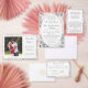 Inside format is that of a traditional, Catholic wedding Mass with room for up to seven bridesmaids and groomsmen names. Inside background is white. Back cover displays names of flower girl and ring bearer, message of gratitude and optional memorial message. The photo you supply is featured at bottom. All text is customisable. Designed to coordinate with the "Champagne Pink Lace Catholic Wedding Suite."