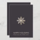Elevate your holiday greetings with our Champagne Snowflake Holiday Card. The exquisite brushed champagne snowflake shines against a deep background, exuding timeless elegance. Share warm wishes with this minimalist yet captivating design, perfect for sending festive joy to your loved ones. Personalise the back message to create a heartfelt note, and make this holiday season truly special. Ideal for stylish holiday mailings and thoughtful gestures, this card is a luxurious choice for expressing your holiday sentiments.