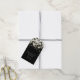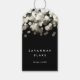 Chic hang tags for your business feature a crisp black background with a top border of luminous bokeh lights in shades of white and champagne. Customize with two lines of custom text beneath in white. Backs are solid white for your additional custom text or handwritten message.