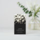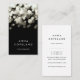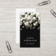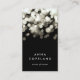 Simple and elegant vertical business card design features white and champagne bokeh lights on a crisp black background, with modern white lettering. Personalise with two lines of custom text on the front, and add your full contact information to the reverse side.