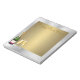 5.5” x 6” notepad with an image a champagne bottle and two filled champagne glasses on a gleaming silver and brushed gold background. See the entire New Year Notepad collection under the OFFICE category in the HOLIDAYS section.