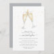 Festive and elegant "brunch & bubbly" bridal shower invitations feature a pair of clinking champagne glasses in watercolor, filled with bubbly. Personalise with your shower details in chic grey lettering.