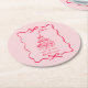 Champagne Tower Pink Hand Drawn Doodles Birthday Round Paper Coaster