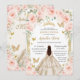 Champagne Vintage Gold Blush Floral Quinceañera Invitation