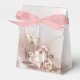 Beautiful blush wedding cake and champagne wedding favour boxes. You can ad text and choose the ribbon colour on this elegant champagne glass wedding favour box.