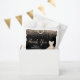 A beautiful champagne white themed elegant watercolor dress gown on a black background with faux glitter at the top and bottom of the favour bag.