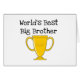 A big gold trophy that reads "Champ" and text that reads "World's Best Big Brother" on big brother shirts, mugs, tote bags, buttons, keychains, cards, and more!
