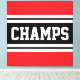 This sporty, athletic design features bold CHAMPS text inside a highlighted black and white horizontal racing stripes against bright red outer stripes. The text in this design can be personalised.