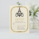 Chandelier and Art Deco border beige wedding RSVP reply/response card featuring a vintage style black chandelier and a black, gold border in Art Deco style on eggshell cream-beige. This full of finesse and elegance ecru template design is part of a wedding set and adds a touch luxury and glam to your wedding.
