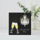 Elegant New Years Eve party invitation done in jet black, with lovely graphics of a chandelier silhouette, in white, with glowing candles. Two pretty decorative champagne glasses on the left side of the invitation and white script text reads New Years Eve Party. The backside of the invitation is also done in black, with the same smaller version of the chandelier, in the upper right corner. White text is fully customisable to suit your party needs. Beautiful way to ring in the new year.