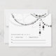 Response card to coordinate with 'Chandelier Invitation'. Card elegant jewel and ribbon graphic pattern with space to insert your own text below. Pin-Stripe pattern on the backside adds a touch of whimsy to this formal design.
