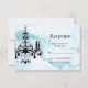 A fancy crystal chandelier on an illustrated turquoise marble background accents this RSVP, making it perfect for an elegant, modern or trendy party. This is the coordinating RSVP for the Chandelier Bat Mitzvah Invitation on Turquoise Marble.