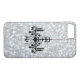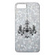 A fun and flirty chandelier accented this iPhone 7 case on a sparkly silver bokeh background. Note: no glitter or sequins are used in making this case, the sparkly silver background is a photo illustration.
