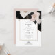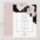 Elegant Chanel-inspired wedding invitation featuring blush pink florals and foliage against a dramatic black sweeping backdrop. Creating a blend of luxury, sophistication and romance.