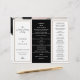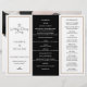 Elevate your wedding day with this Chanel-inspired tri-fold program. The black and white design features dramatic bejeweled flowers in sheer pink and white, adding a touch of luxury to your ceremony. Customise it to guide your guests through every special moment of your day.