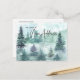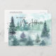 Change of address/moving announcement postcard with a beautiful snowy mountain scene with watercolor pine trees. Let all of your friends and family know you have moved. Text on the front says, "We have a new address." The back includes your new address and your own personal message.