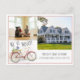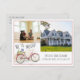 Vintage red bicycle with a basket of flowers, watercolor new home announcement card. "We've Moved", change of address card with two photos. Upload two of your favourite new home photos and personalise text with your new address.
