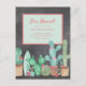 Change of address / Moving announcement postcard with a vintage black chalkboard and green watercolor cactus and floral.