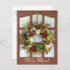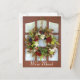 Pretty photo of a of a decorative wreath hanging on a door. We've moved in white text on the bottom of the post card. Customise all the text front and back to suit your needs.