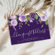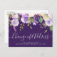 Announce your new home to family and friends with this modern design of modern script and purple flowers.