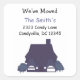 A cosy house in purple tones. A fun way to share your new address. Customise with your family name or business name and address as desired.
