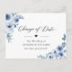 Change of Date Elegant New Plan Dusty Blue Flowers Postcard