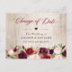 Change of Date Rustic Wood Burgundy Red Floral Postcard