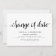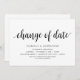 Change the date card. This is the Wedding party invitation Rescheduled (postponed / postponement) card (Change of date), in the modern minimal simple clean design themed, Black font.