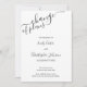 Elegant and simple Change of Plans card to notify guests of your wedding postponement. The design is in black and white with hand lettered script typography for the names of the bride and groom and the words "change of plans". The sample wording reads "The wedding of [your names] has been postponed. We will let you know as soon as we set a new date. It was a difficult decision and we thank you for your love and understanding". The template is set up ready for you to add your names and edit as much of the text as you wish.