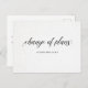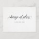 These simple and minimal wedding reschedule or postponement cards feature black calligraphy that says "change of plans" on a white, faux watercolor paper background. If you must change the date of your wedding, this is a classy and simple way to do so.