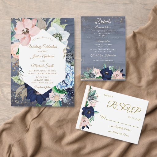 These Change of Plans cards are going to help your guests navigate the necessary changes you've made to your event. Personalise with your event information to create a one of a kind Change of Plans that your friends and family are sure to appreciate. Designed with a dusty blue and pink rose floral pattern and modern fonts, both front and back.